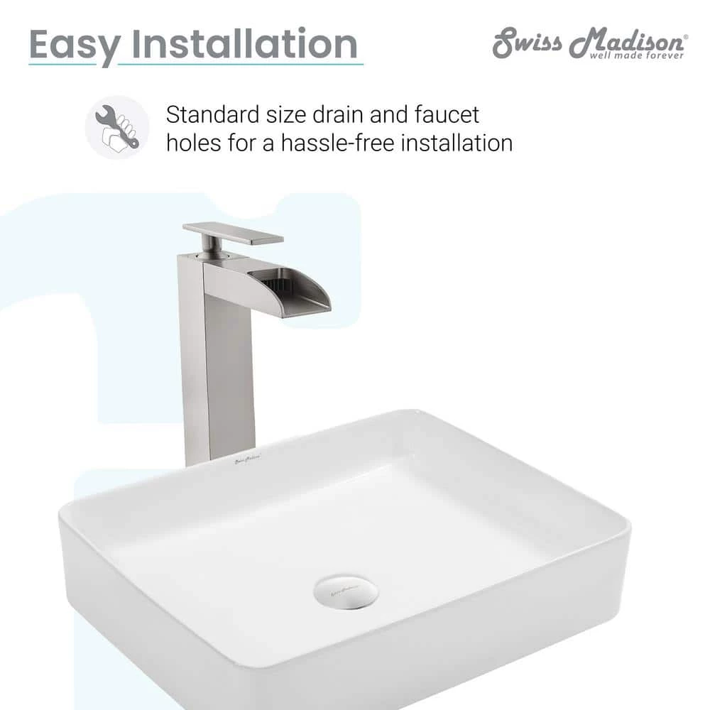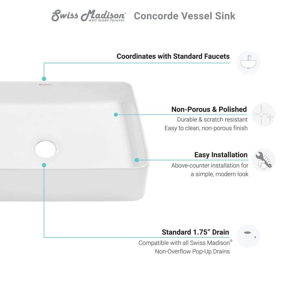 Sleek and contemporary, the Concorde vessel sink features a fresh look for classic white ceramic, in true minimalist fashion. Striking simple style, while maximizing precious bathroom space, makes above-counter sinks popular for powder rooms. Features smooth baked-on glaze, and non-porous high-gloss finish, for durable scratch-resistant and easy to clean convenience.