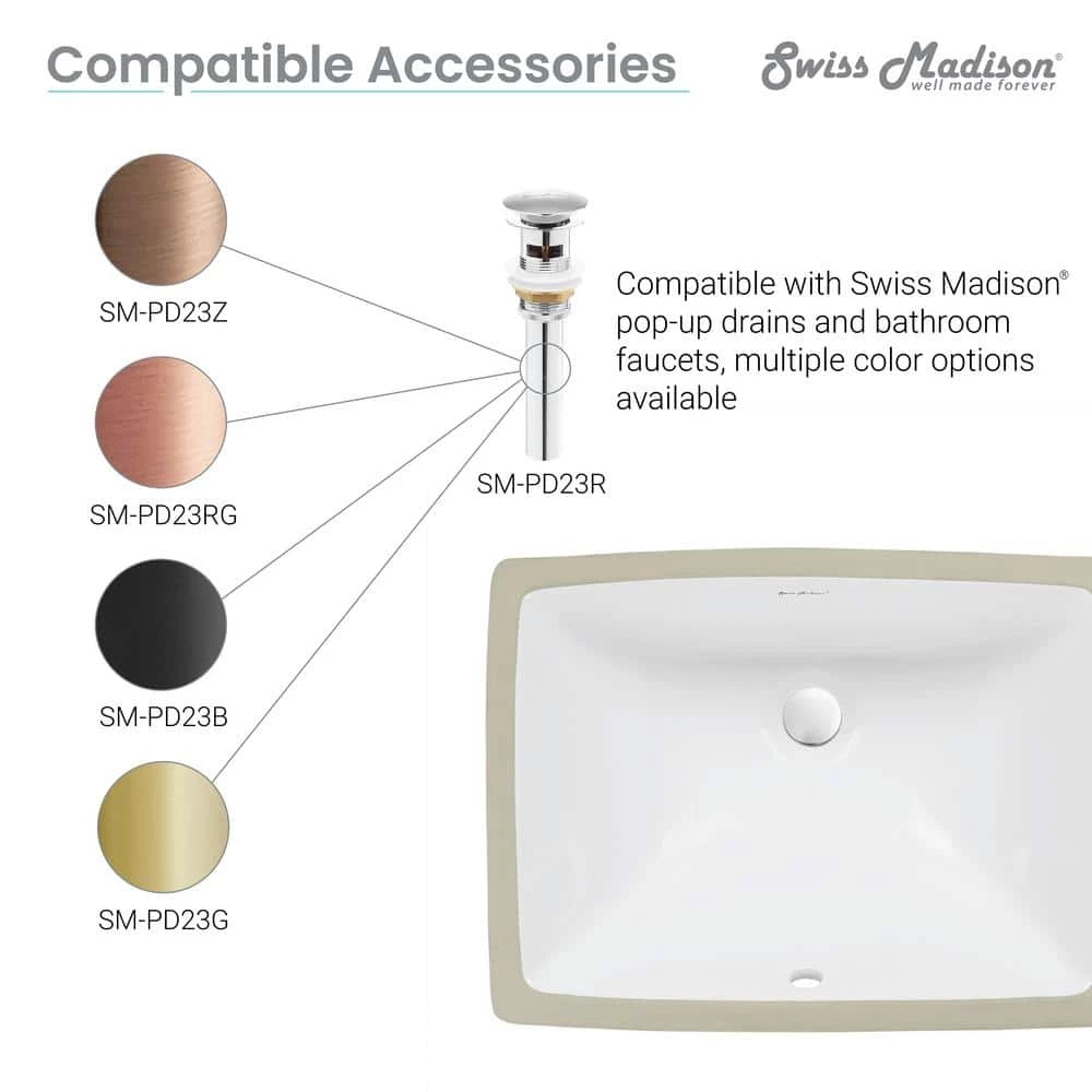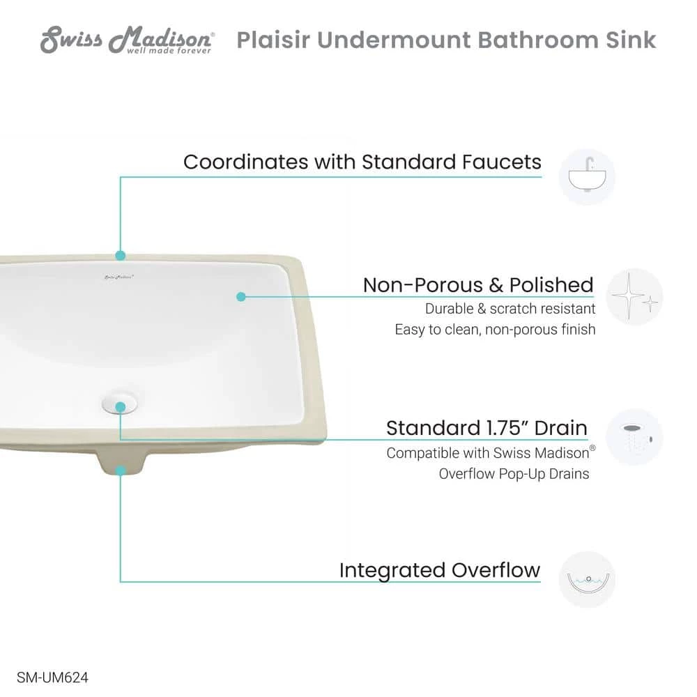 Sleek and contemporary, part of the Plaisir Collection, 18 in. Rectangular Under-Mount Bathroom Sink features a timeless design that suits both traditional and modern bathroom decors. Blend it with your choice of counter tops for Rectangular Under Mount Bathroom Sink features a timeless design that suits both traditional and modern bathroom decors. Blend it with your choice of countertops for a clean look.