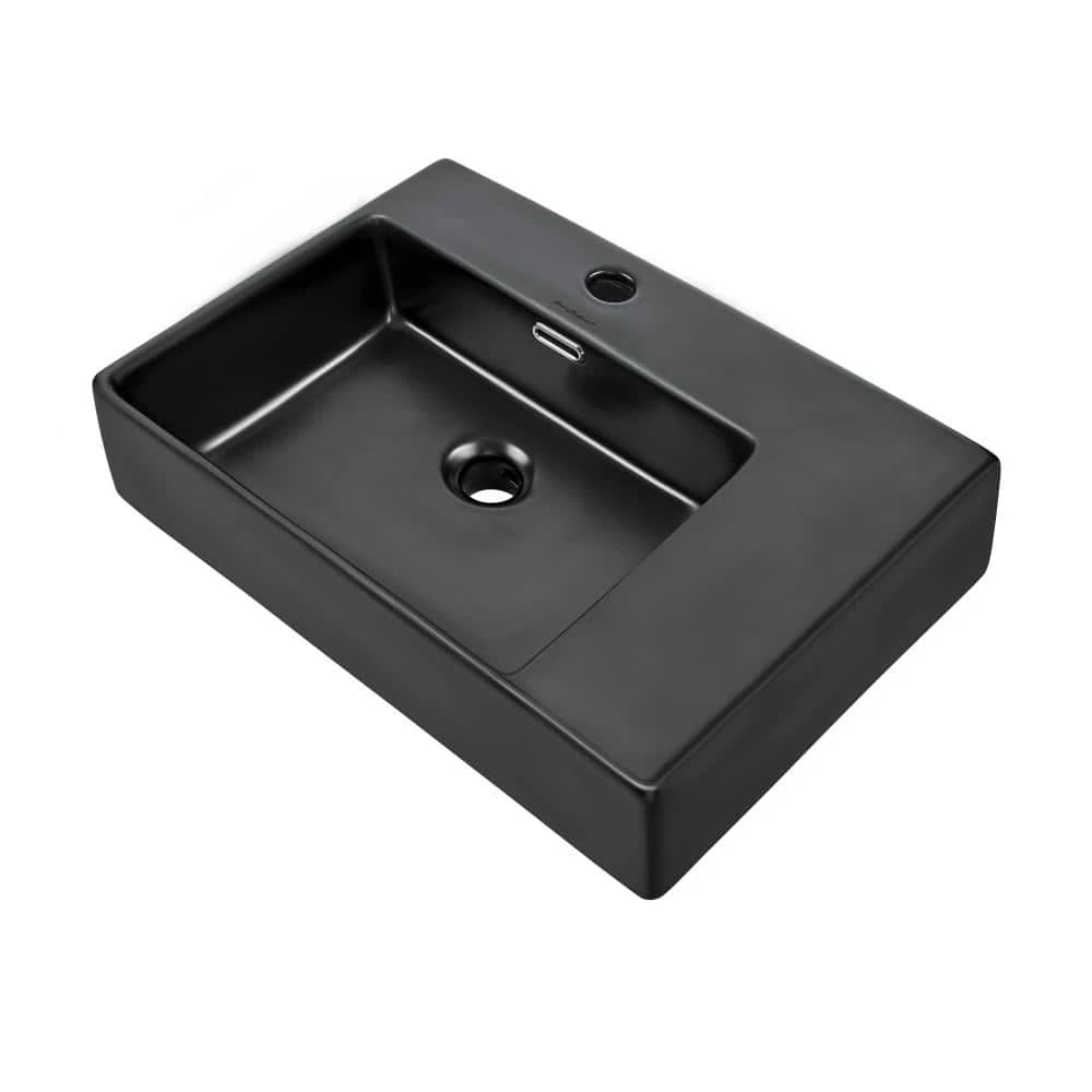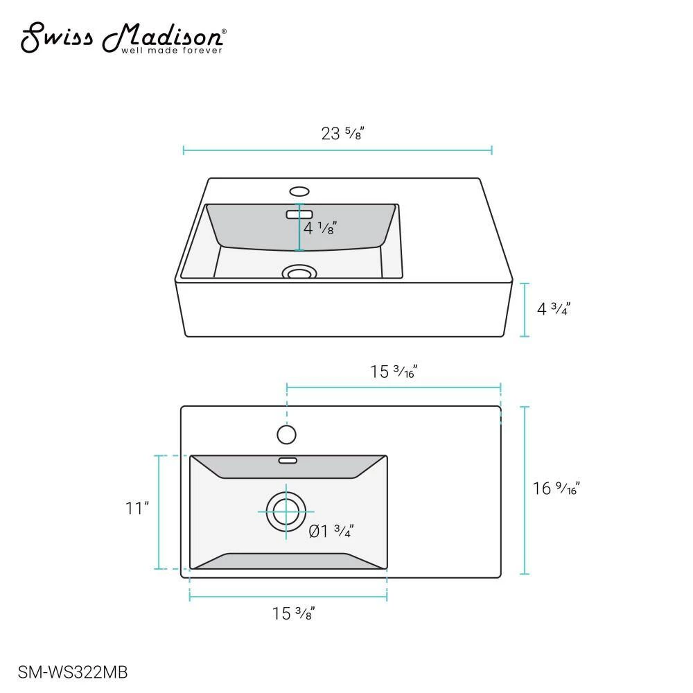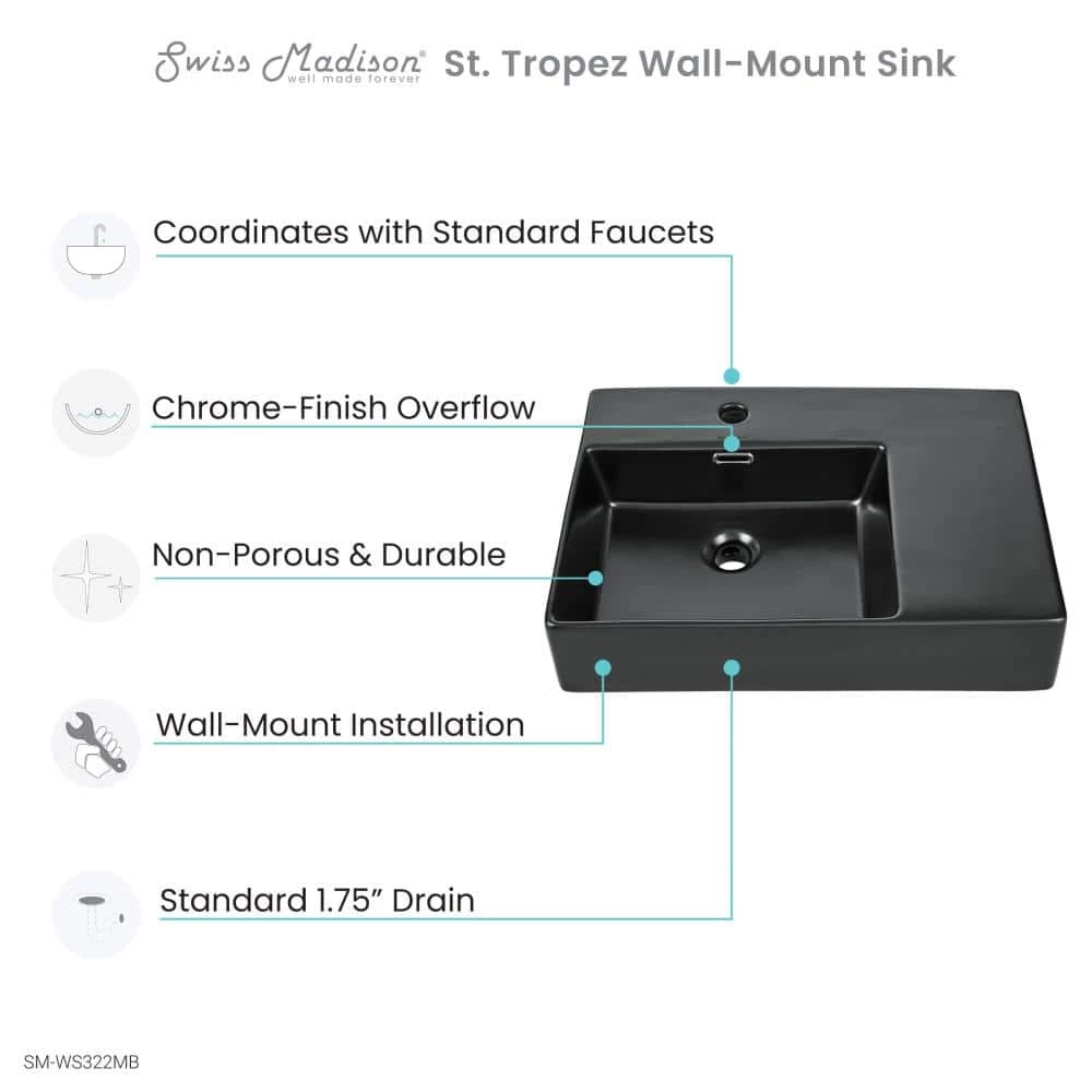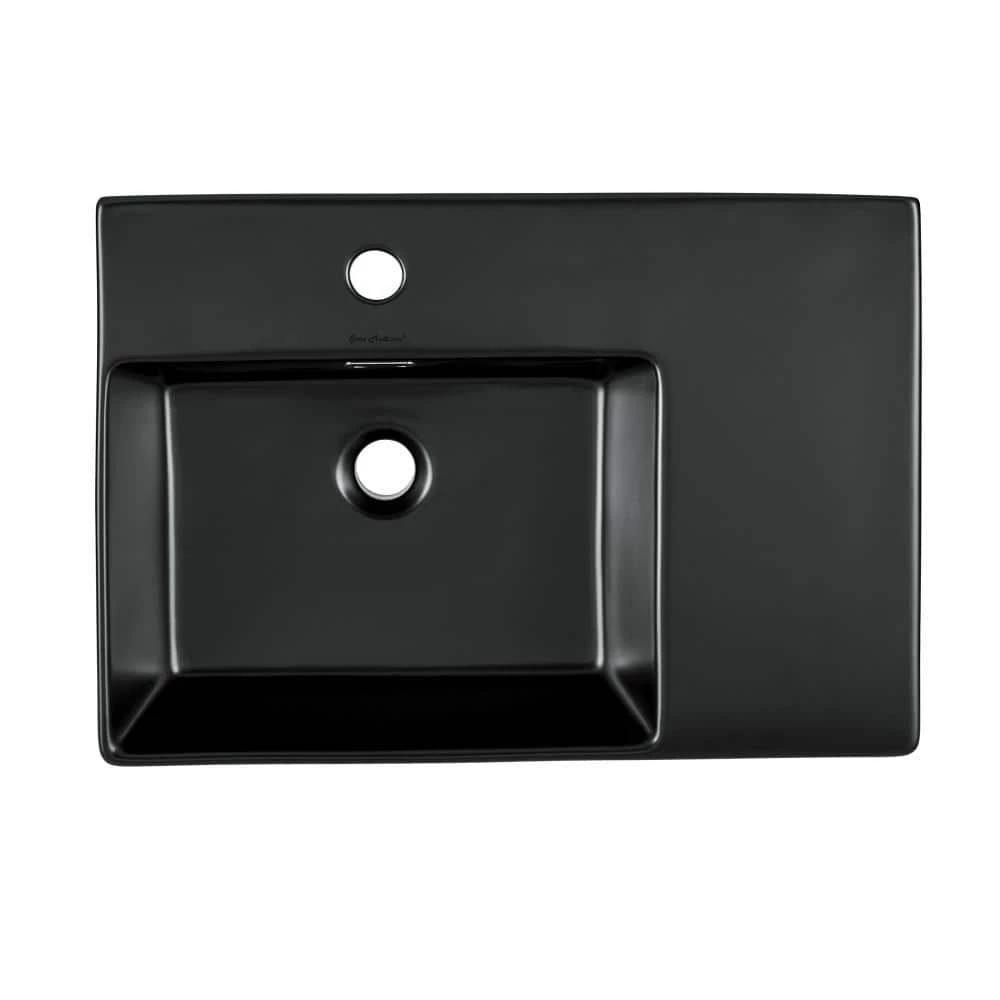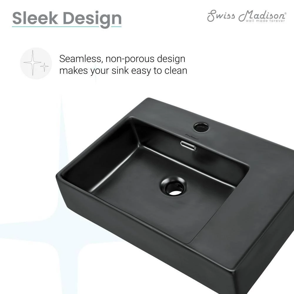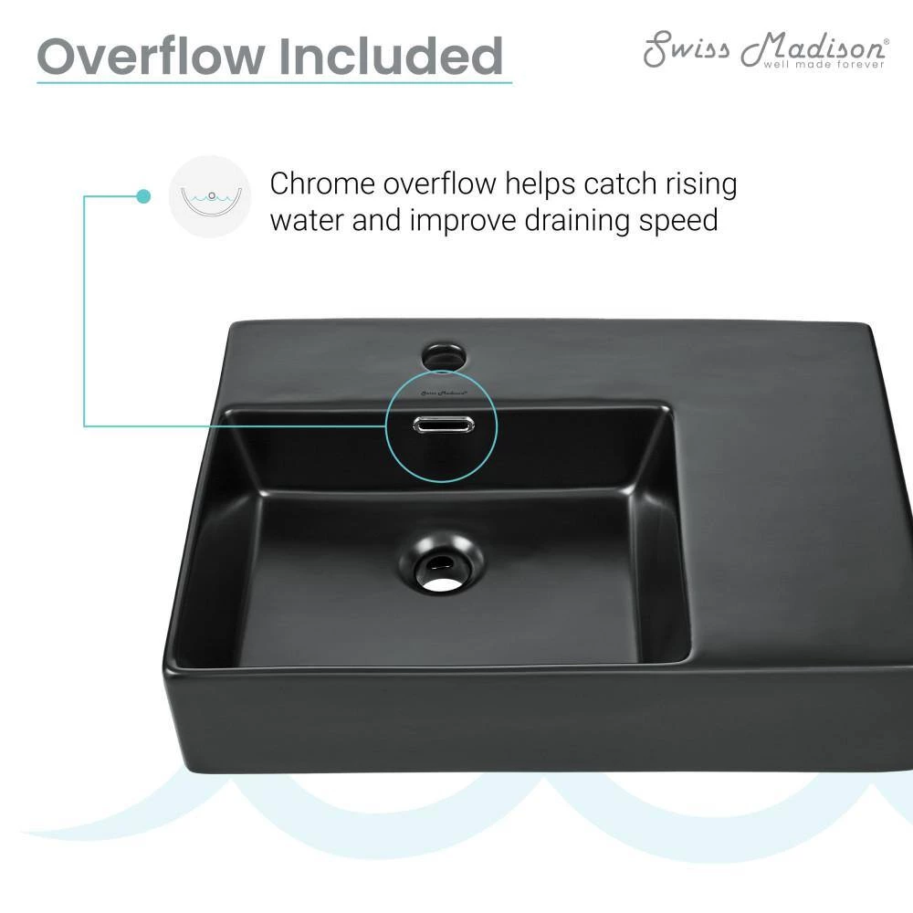 Swiss Madison St. Tropez 24 in. x 18 in. Matte Black Ceramic Wall Hung Vessel Sink with Left Side Faucet Mount