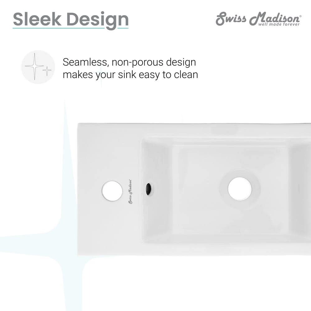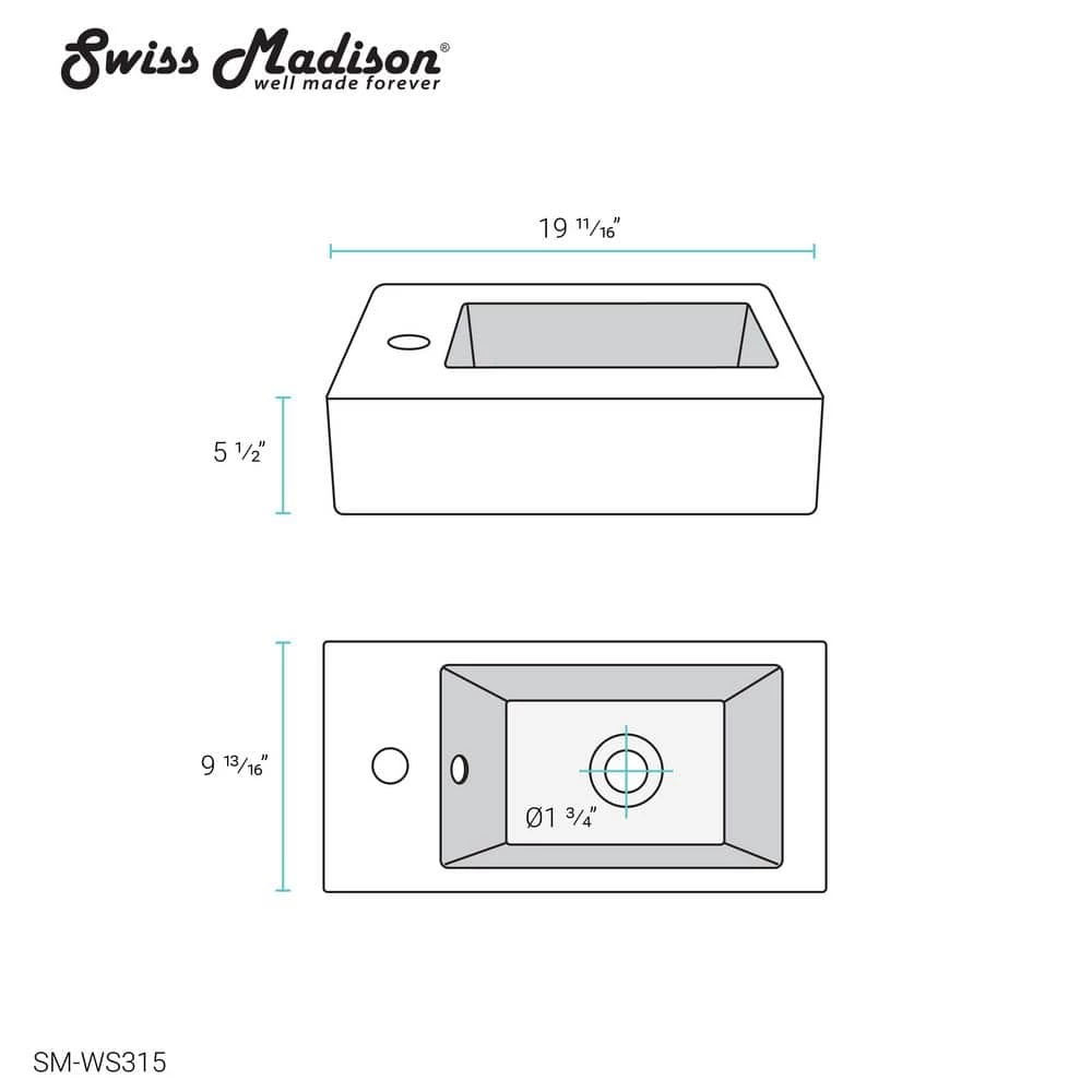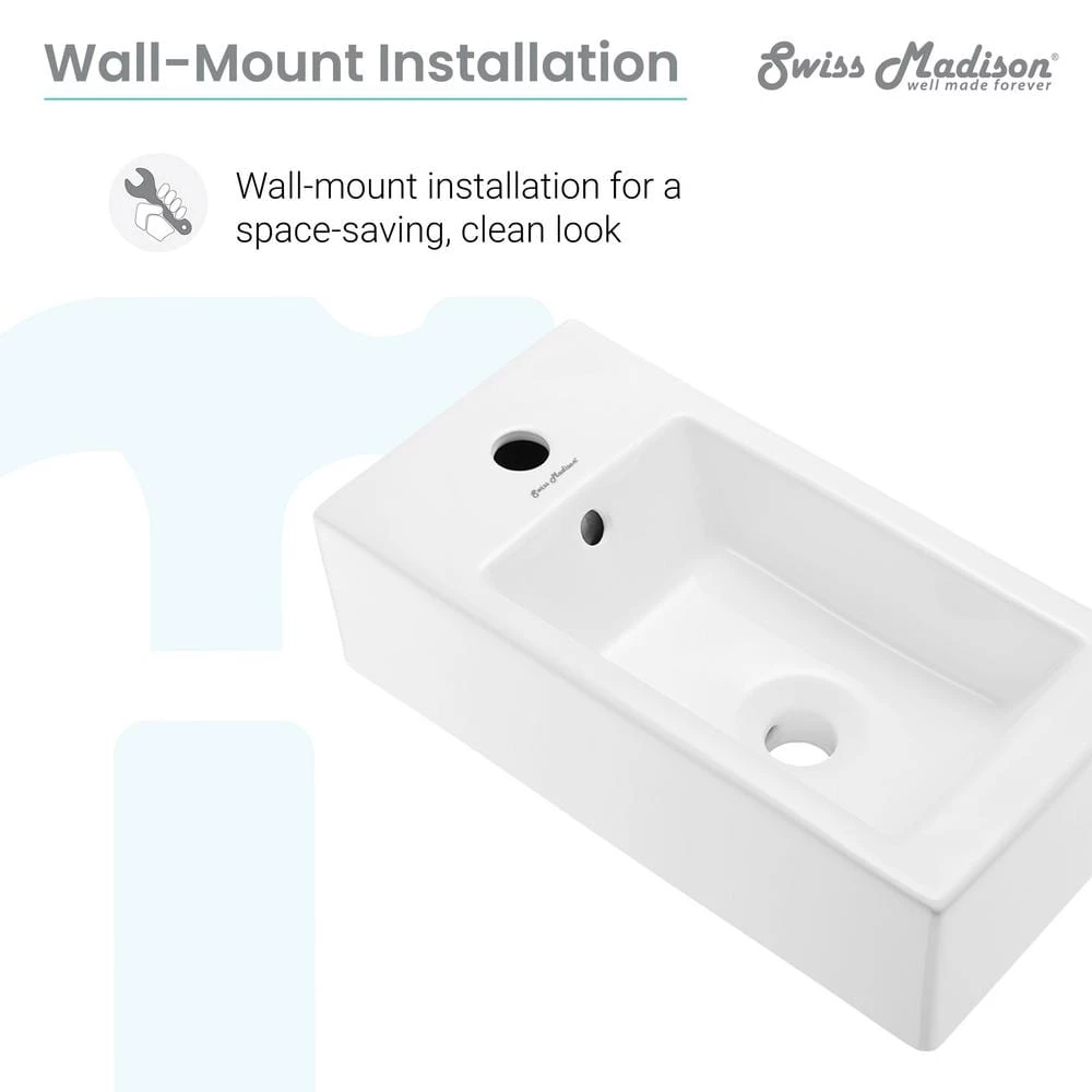 Swiss Madison’s Ceramic Wall hung sink has an elegant design that can accompany any setting. It’s convenient and compact shape fits even the smallest of areas. Constructed of Vitreous China the wall sink is a durable and long lasting selection.