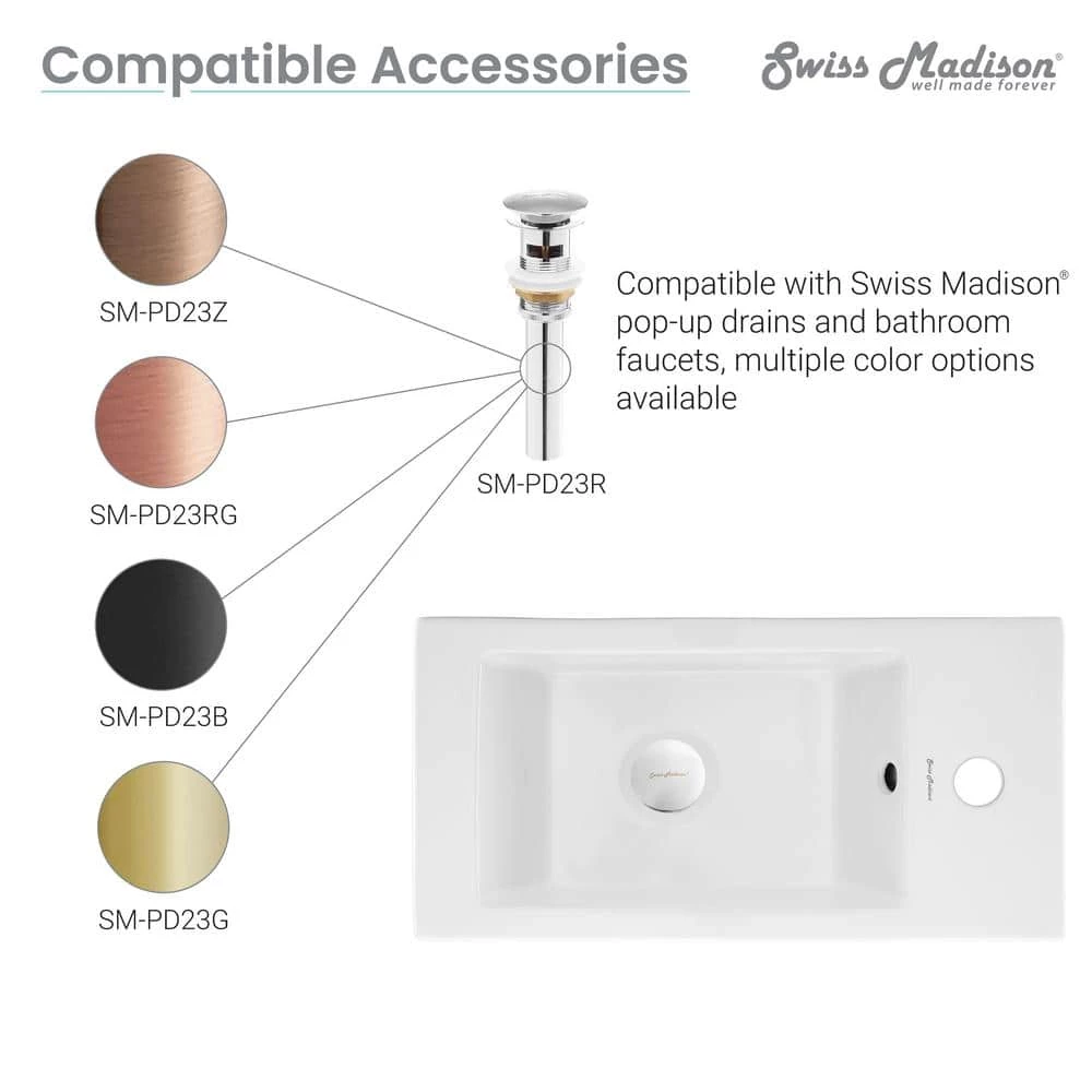 Swiss Madison’s Ceramic Wall hung sink has an elegant design that can accompany any setting. It’s convenient and compact shape fits even the smallest of areas. Constructed of Vitreous China the wall sink is a durable and long lasting selection.