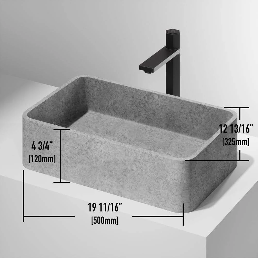 VIGO presents a beautiful bathroom vessel sink handcrafted from the Concreto Stone blend making this sink more durable and longer-lasting than traditional sink materials such as ceramic. VIGO Concreto Stone’s neutral gray color and rectangular shape complement any bathroom vessel faucet, wall mount, or countertop. Its enhanced durability ensures it remains as a staple piece in your bathroom. The Concreto Stone Collection is ideal for traditional, transitional, and modern bathroom spaces.