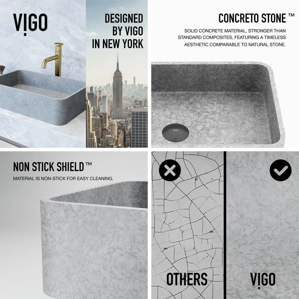 - CONCRETO STONE TM: artisan-crafted concrete blend is stronger and more durable than typical sink materials like fireclay