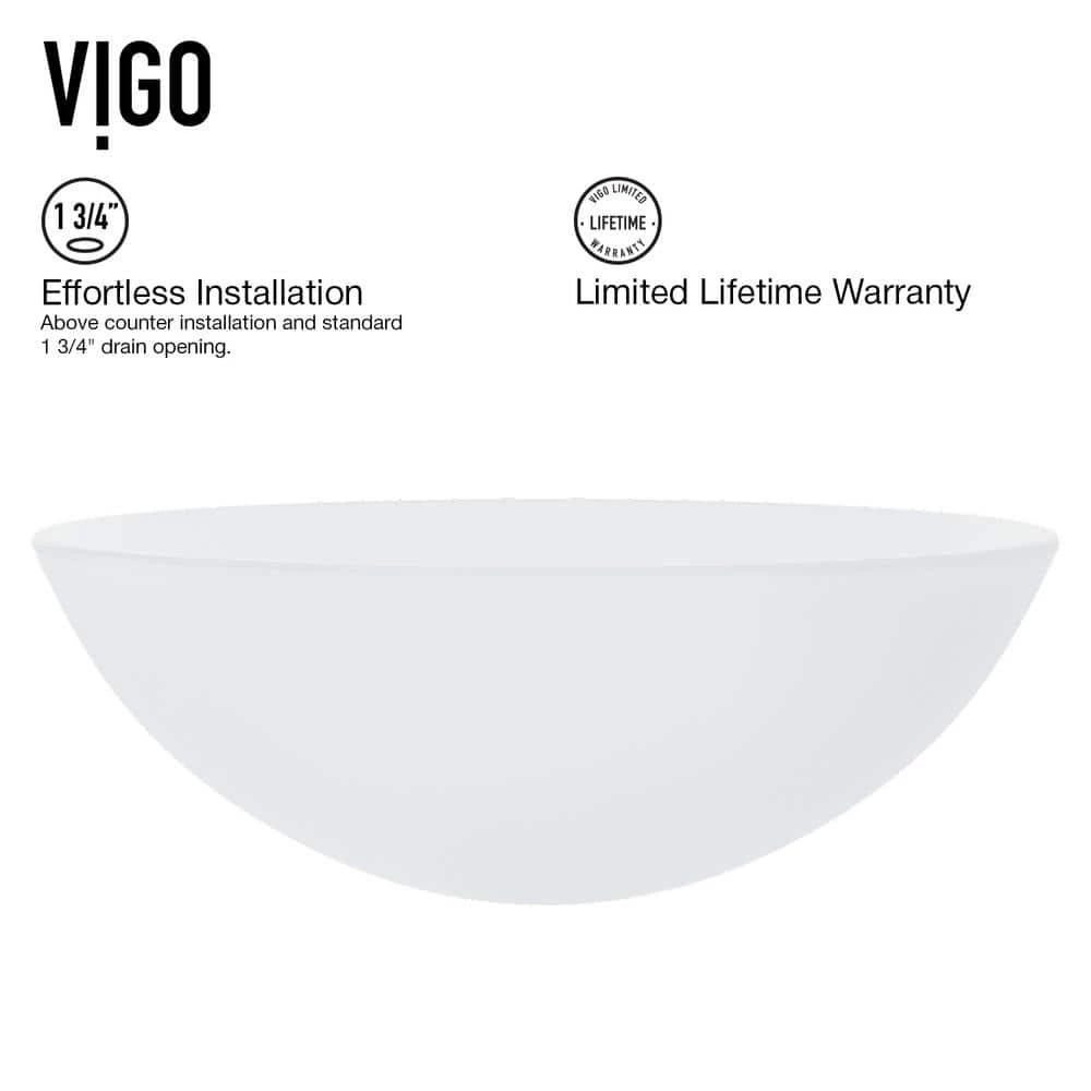 - QUALITY ASSURED WARRANTY: all VIGO bathroom sinks and faucet finishes feature an exceptional limited lifetime warranty