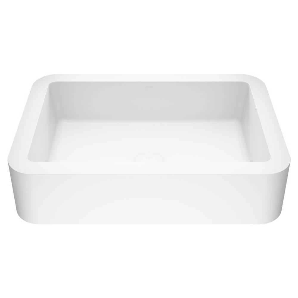 The seamless, solid core Matte StoneTM construction makes the VIGO Petunia Matte Stone Vessel Bathroom Sink extremely durable. Its surface is scratch and fade resistant and is easy to keep clean with the included buffing circle. The Petunia vessel sink brings a modern, elegant feel to any bathroom. Its bold rectangular shape and crisp white color complete this stylish piece.