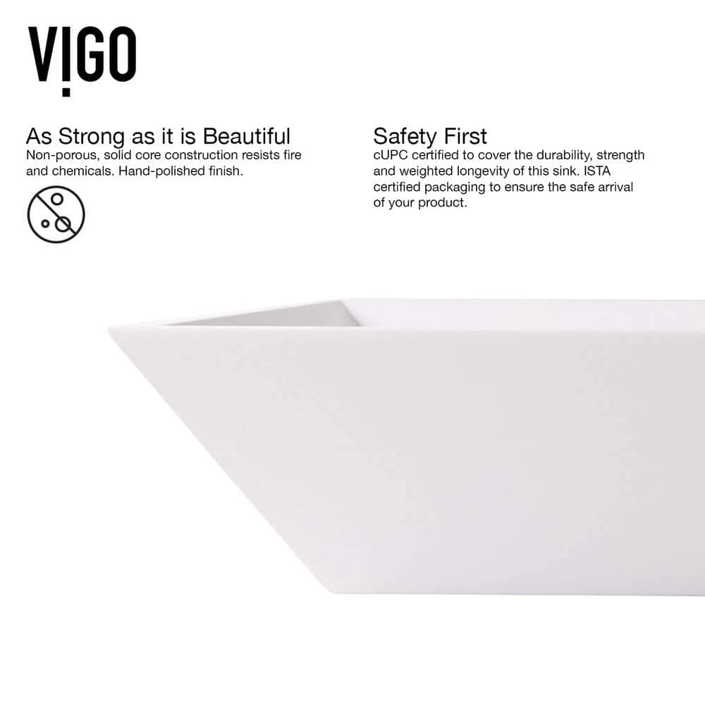 - MATTE STONE TM: VIGO’s proprietary solid core composite is smooth, non-porous and naturally hygienic that expertly resists scratches, fading, and impact