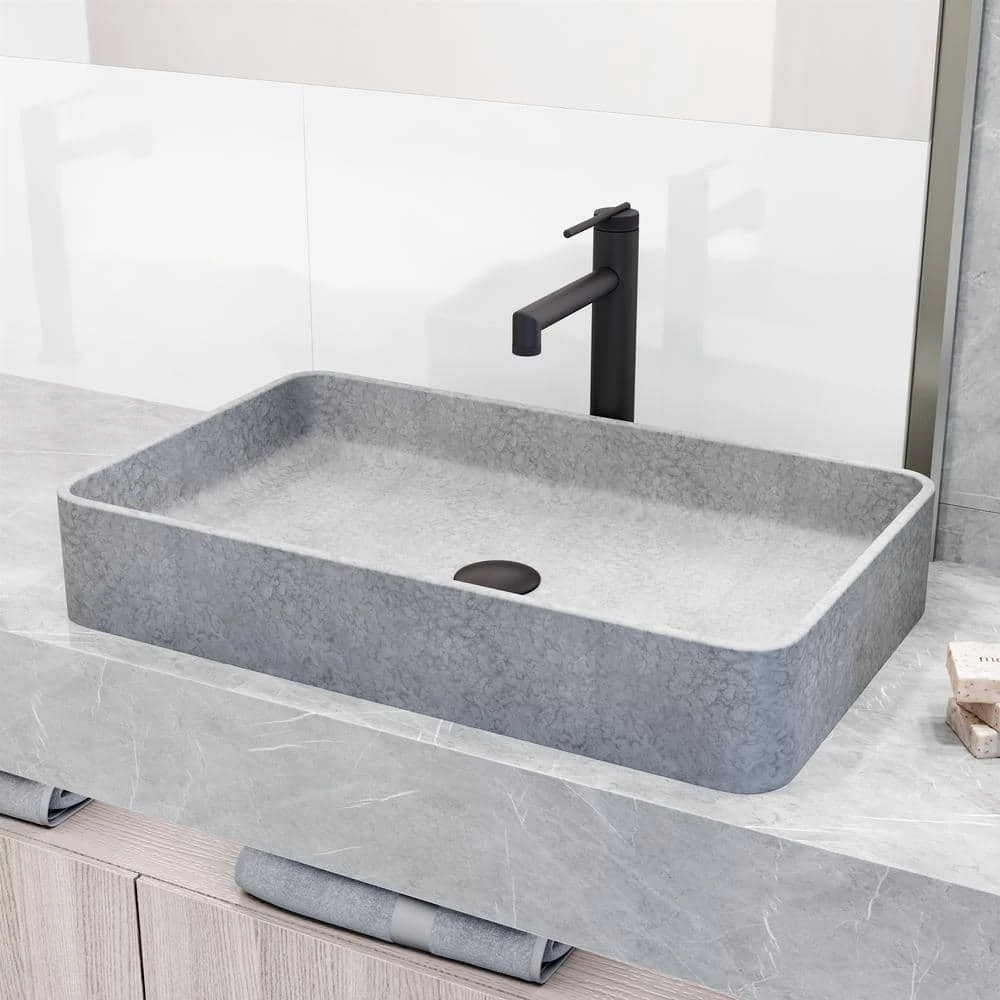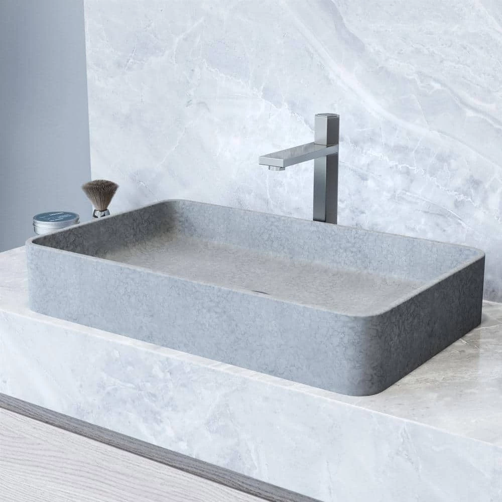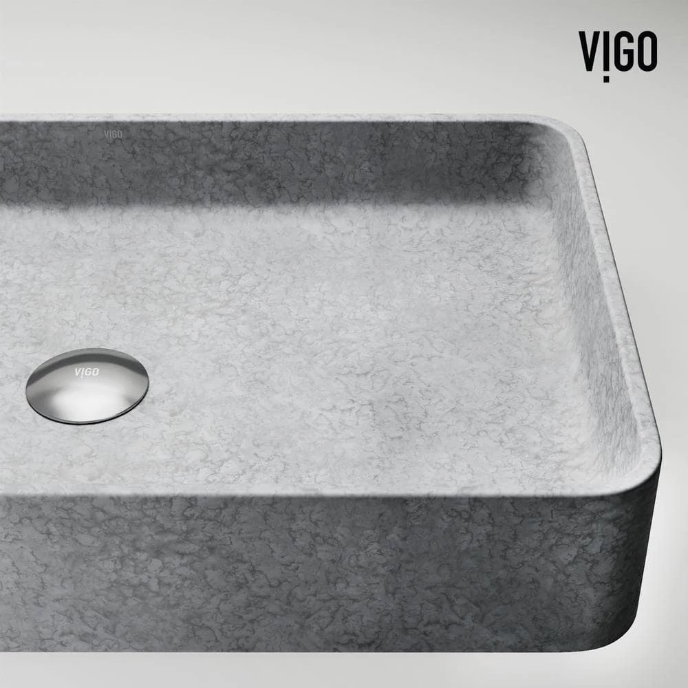 VIGO presents an elevated bathroom vessel sink handcrafted from Concreto Stone, a mixture of concrete and naturally sustainable materials, this sink is more durable and longer-lasting than traditional sink materials. Its neutral gray color and gentle corners complement any bathroom vessel faucet, wall mount faucet, and countertop. The Concreto Stone Collection is ideal for traditional, transitional, and modern bathrooms.