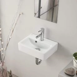 Nameeks Seie 40 Wall Mounted Ceramic Vessel Bathroom Sink in White with 3 Faucet Holes
