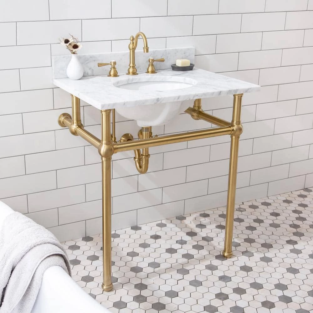 Water Creation Embassy 30 in. Brass Wash Stand Legs with Satin Brass Connectors