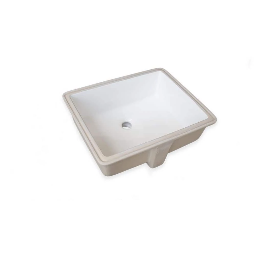 Rectangular Vitreous Ceramic Lavatory Single-Bowl Undermount. The product color is White. The product size is 19-1/2″ x 15-1/2″ x 7-3/4″.